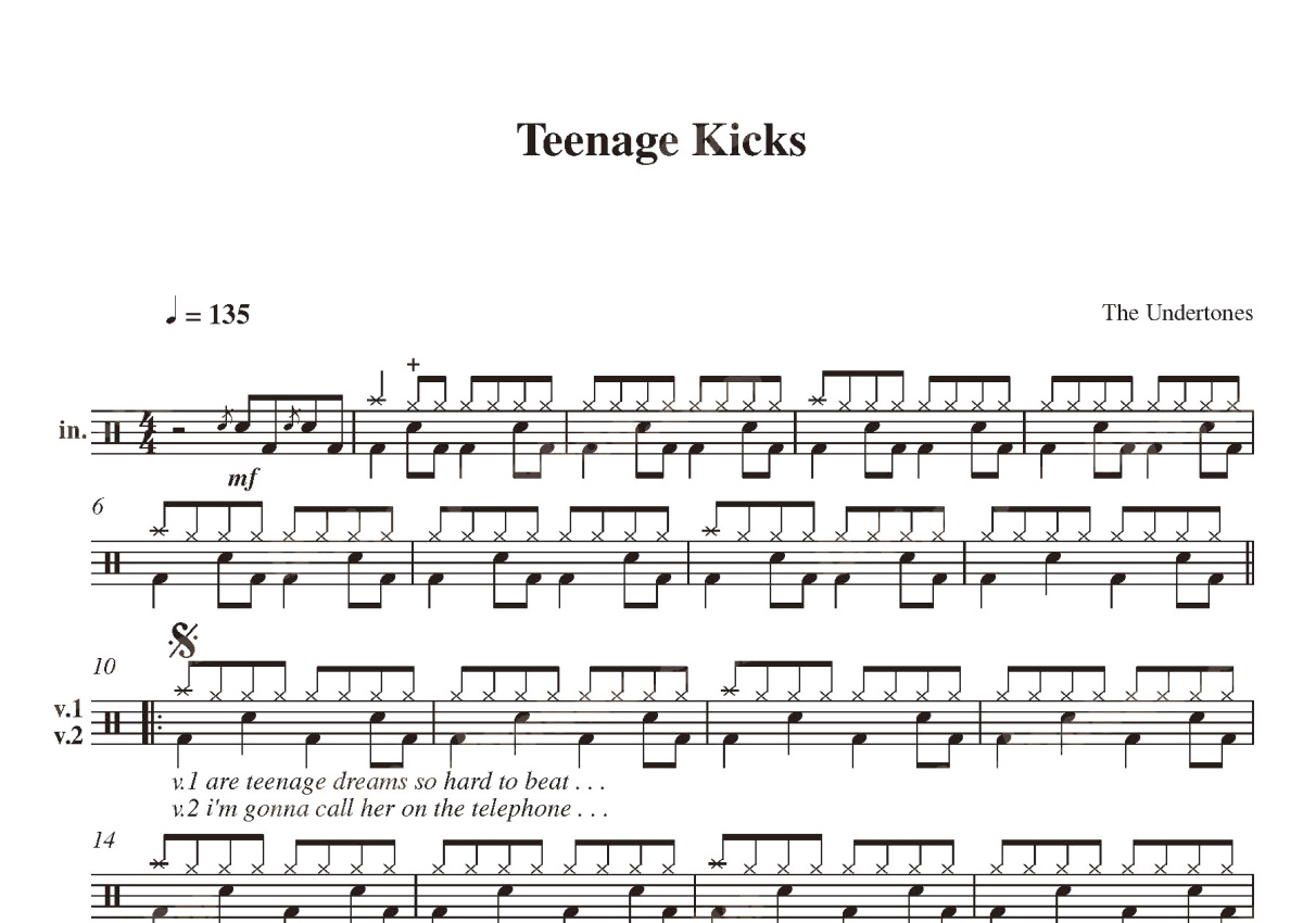 Undertones《TeenageKicks》鼓谱 - 架子鼓谱