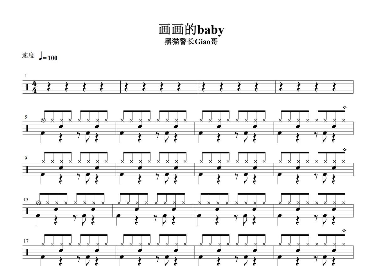 黑猫警长giao哥《画画的baby》鼓谱 - 架子鼓谱