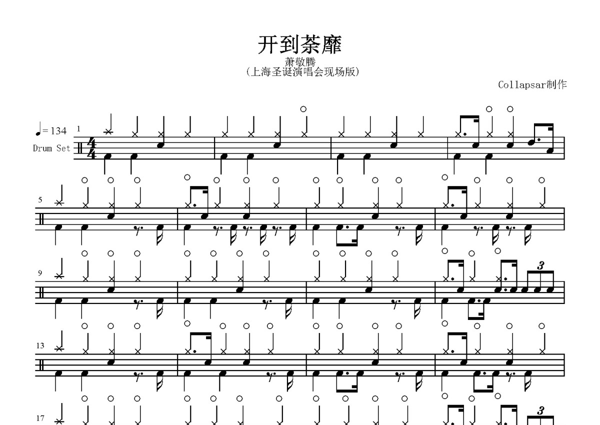 萧敬腾《开到荼靡》鼓谱 - 架子鼓谱 - 上海圣诞演唱会现场版