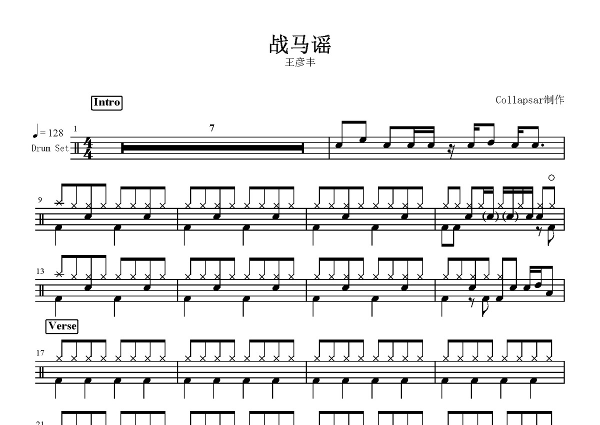 王彦丰《战马谣》鼓谱 - 架子鼓谱