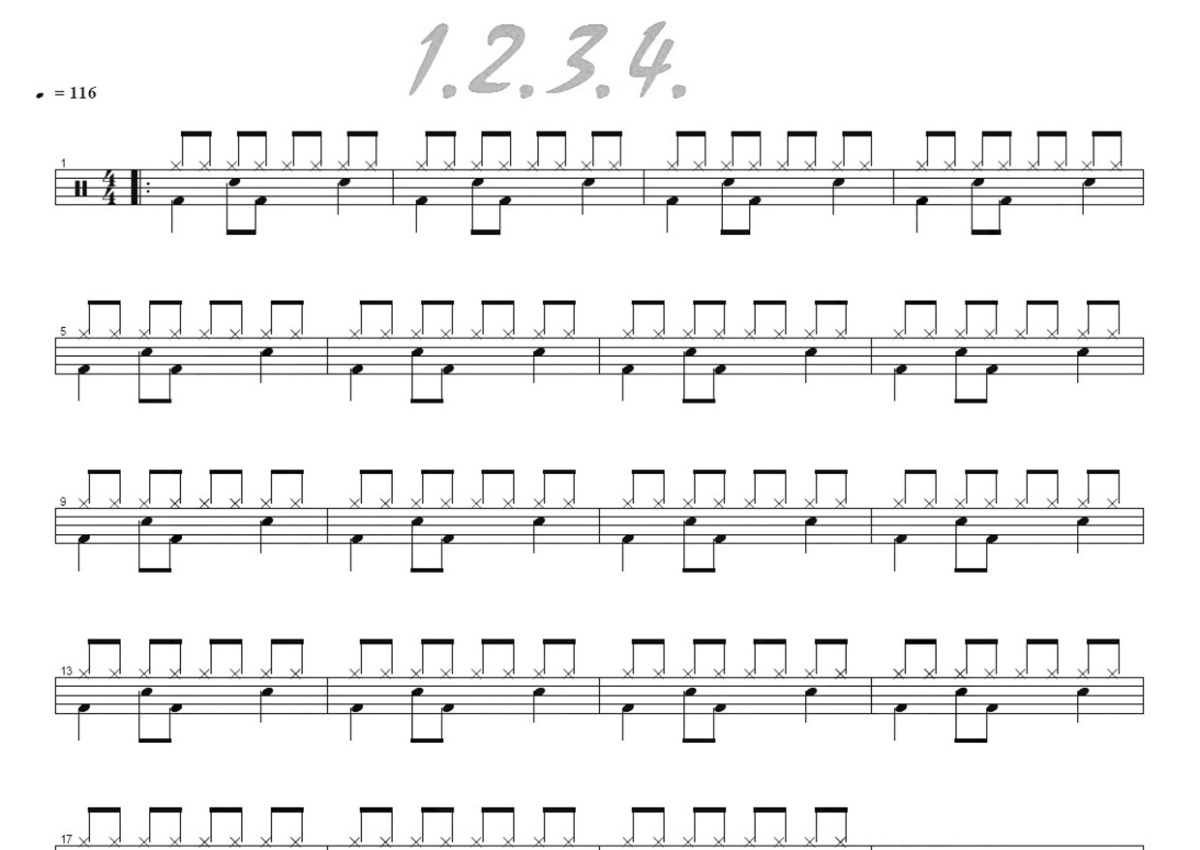 李夏怡《1234》鼓谱 - 架子鼓谱