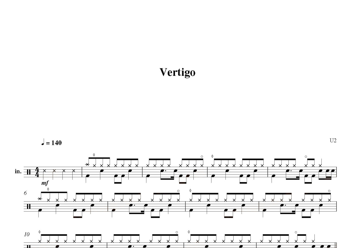 U2《Vertigo》鼓谱 - 架子鼓谱