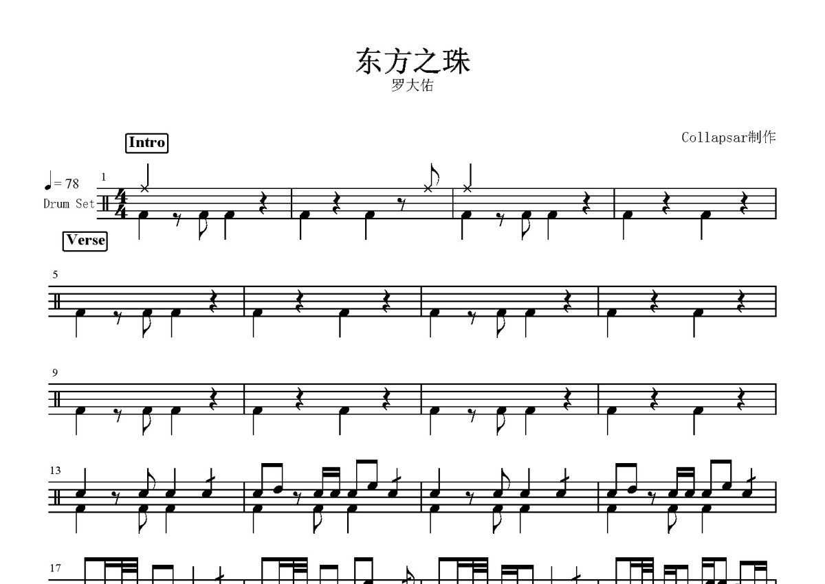 罗大佑《东方之珠》鼓谱 - 架子鼓谱