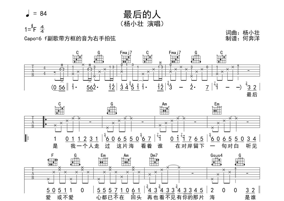杨小壮《最后的人》吉他谱 - C调弹唱六线谱