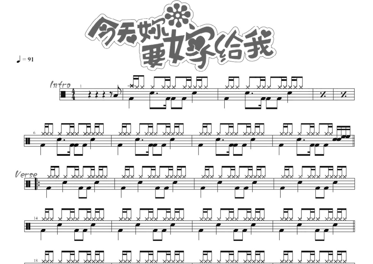 《今天你要嫁给我》是陶喆/蔡依林演唱的一首歌曲,这份鼓谱共有两张高清图谱,图谱由 @打鼓谱 编配上传,图谱使用五线谱编配,使用这份今天你要嫁给我架子鼓谱,你将能够轻松地敲打出这首陶喆/蔡依林的今天你要嫁给我,快来尝试吧。《今天你要嫁给我》是陶喆、蔡依林演唱的一首歌曲,由陶喆、娃娃作词,陶喆作曲并编曲,收录在陶喆2006年8月4日发行的专辑《太美丽》和蔡依林2006年9月17日发行的专辑《唯舞独尊 演唱会鲜听版&混音》中。2007年,该曲获得第18届台湾金曲奖最佳年度歌曲奖。2008年1月13日,该曲获得第二届无线音乐颁奖盛典对唱奖。 陶喆(David Zee Tao),1969年7月11日出生于中国香港,华语流行乐男歌手、音乐人,毕业于美国加利福尼亚大学洛杉矶分校。蔡依林(Jolin Tsai),本名蔡依翎,曾用名蔡宜凌。