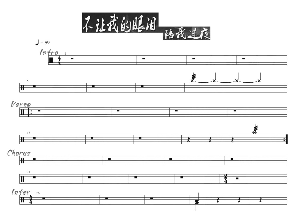 齐秦《不让我的眼泪陪我过夜》鼓谱 - 架子鼓谱