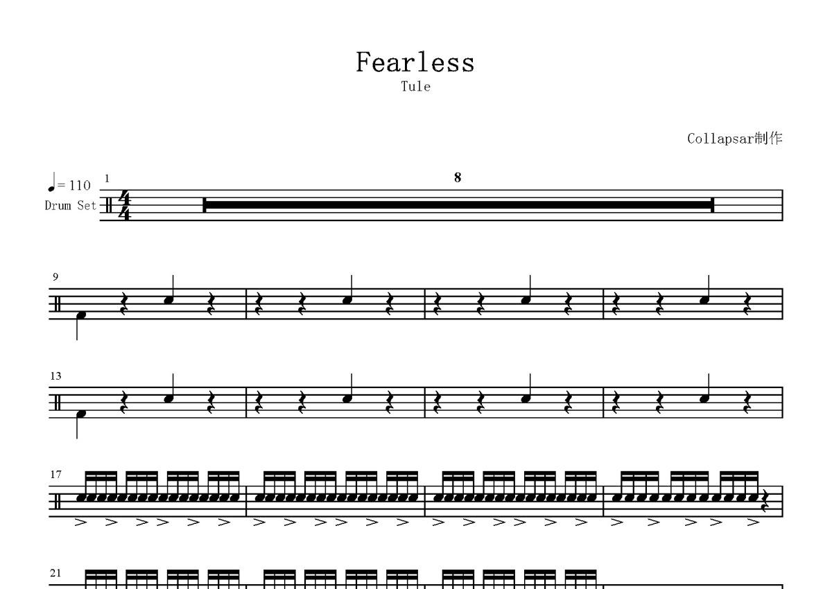 Tule《Fearless》鼓谱 - 架子鼓谱