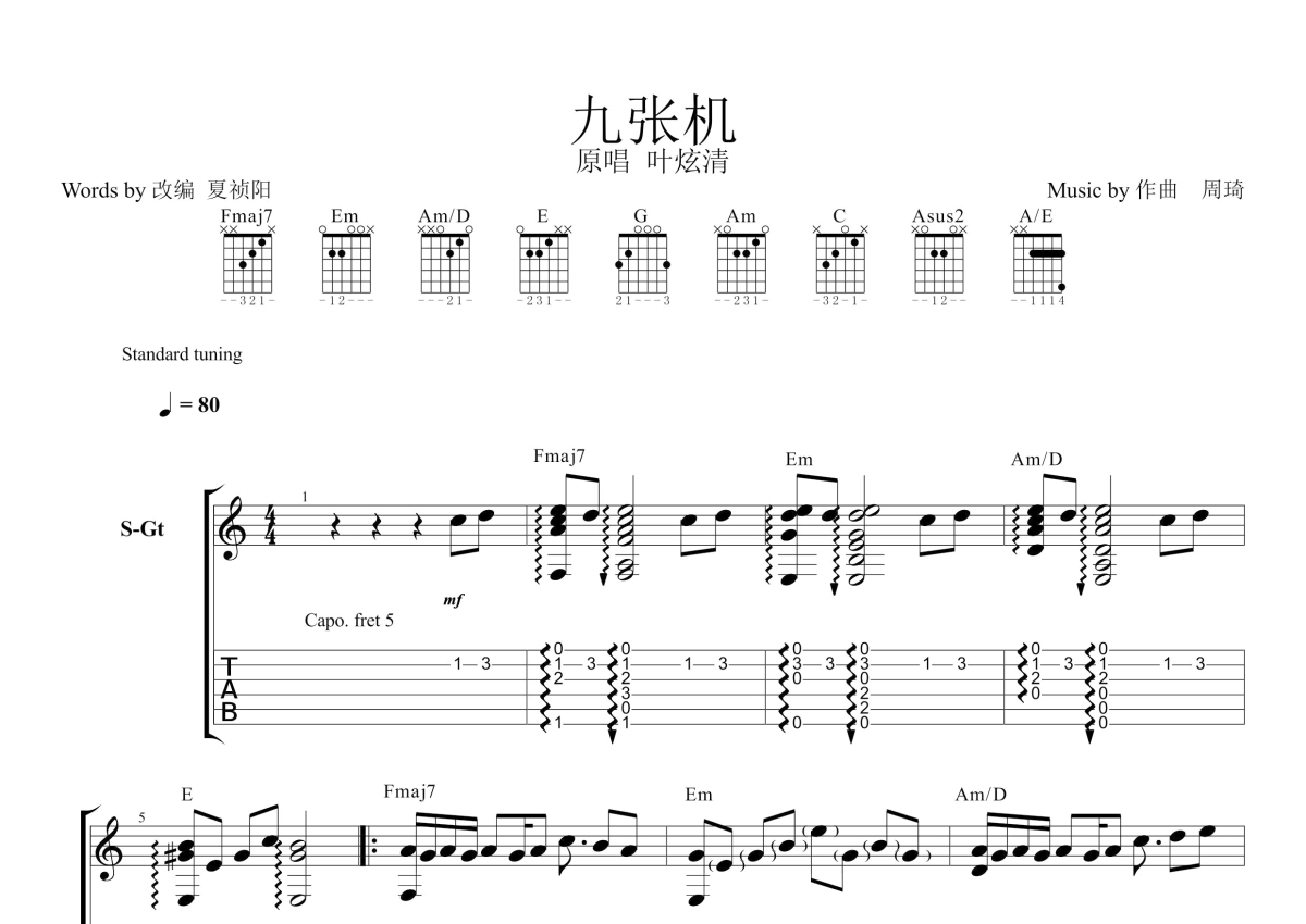 《九张机》是叶炫清演唱的一首歌曲,这份吉他谱共有两张高清图谱,图谱由 @梦马音乐官方 编配上传,图谱使用六线谱编配,包含吉他和弦指法、简谱以及歌词部分,使用这份九张机吉他谱,可以让你更加方便地掌握这首歌曲的弹唱技巧,快来尝试吧。叶炫清《九张机》吉他谱_吉他弹唱谱。