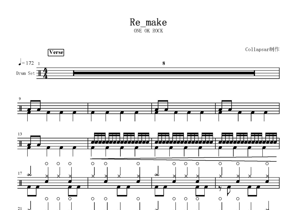 ONE OK ROCK《Re:make》鼓谱 - 架子鼓谱