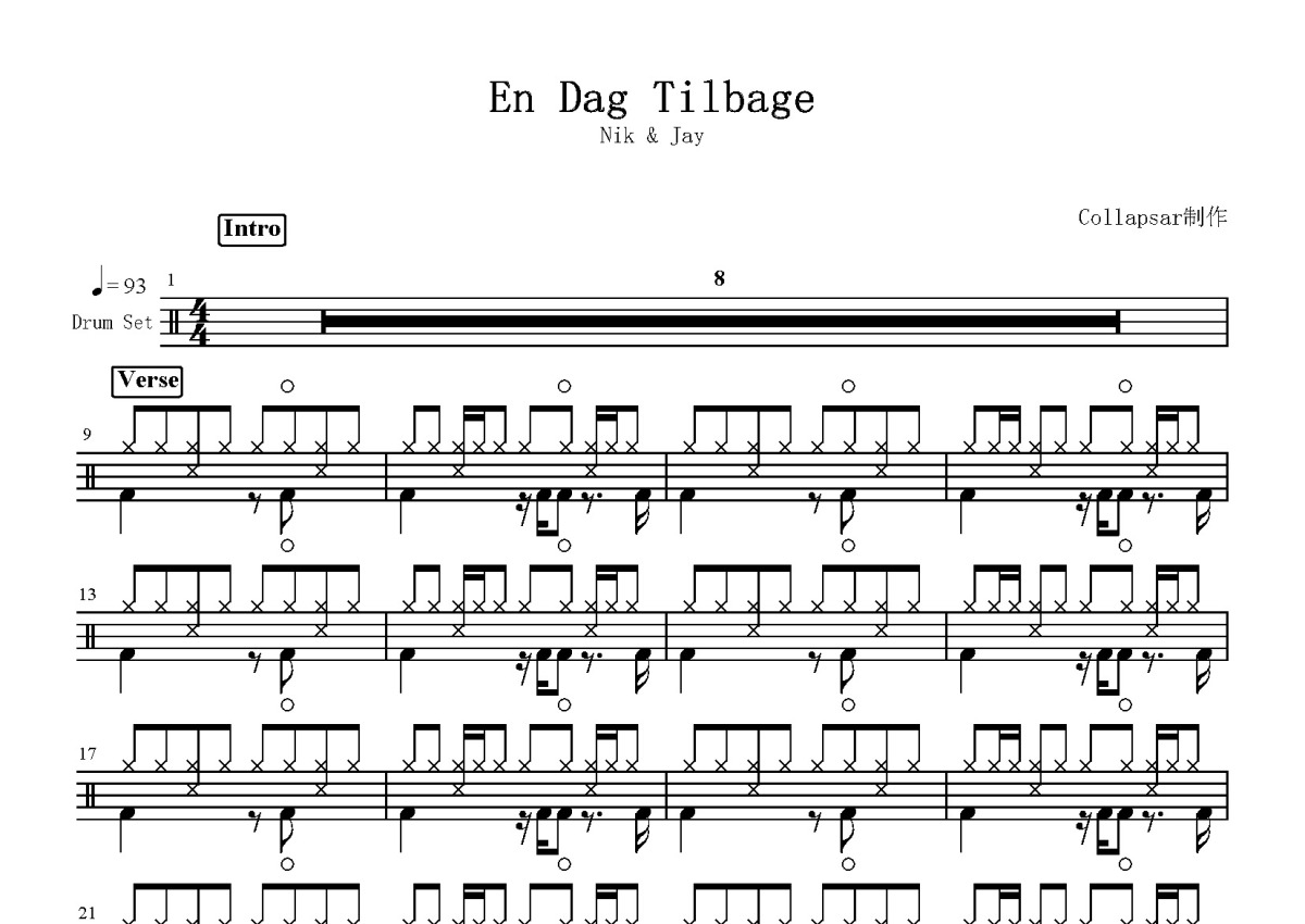 Nik、Jay《En Dag Tilbage》鼓谱 - 架子鼓谱