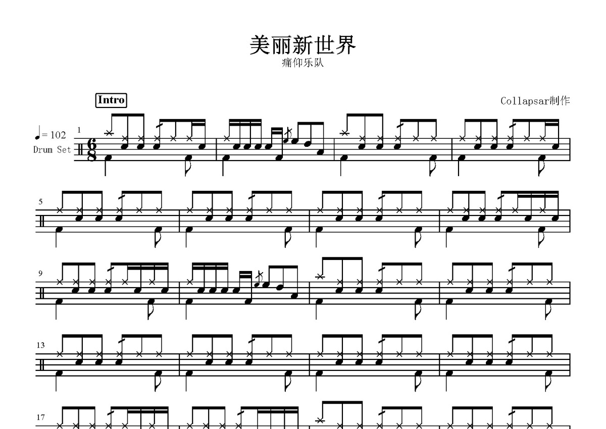 痛仰乐队《美丽新世界》鼓谱 - 架子鼓谱