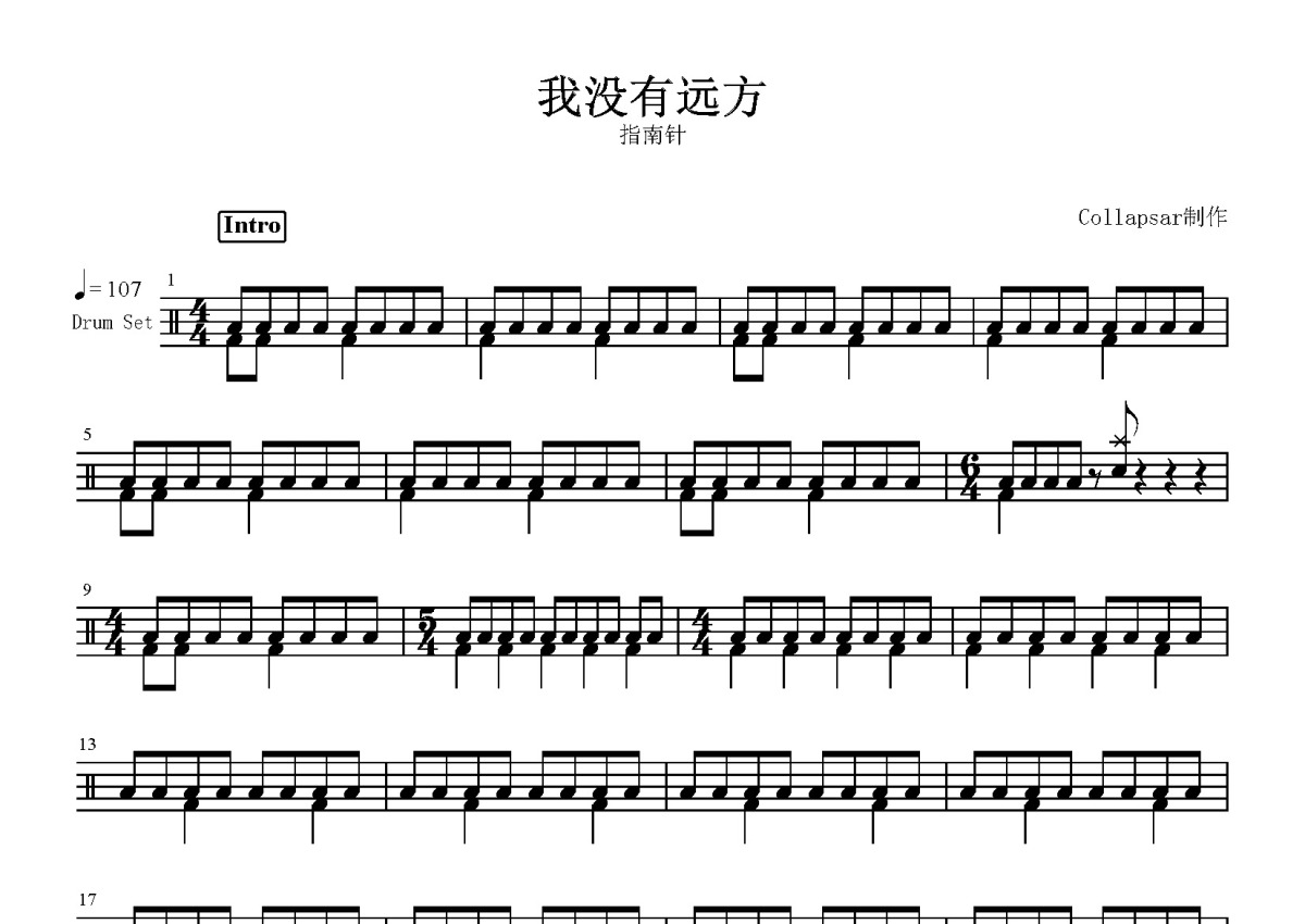《我没有远方》是指南针演唱的一首歌曲,这份鼓谱共有四张高清图谱,图谱由 @打鼓谱 编配上传,图谱使用五线谱编配,使用这份我没有远方架子鼓谱,你将能够轻松地敲打出这首指南针的我没有远方,快来尝试吧。《我没有远方》是洛兵作词,周迪作曲,罗琦演唱的一首歌曲。 。