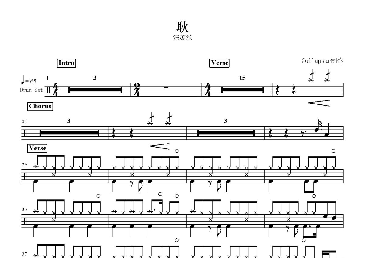 汪苏泷《耿》鼓谱 - 架子鼓谱