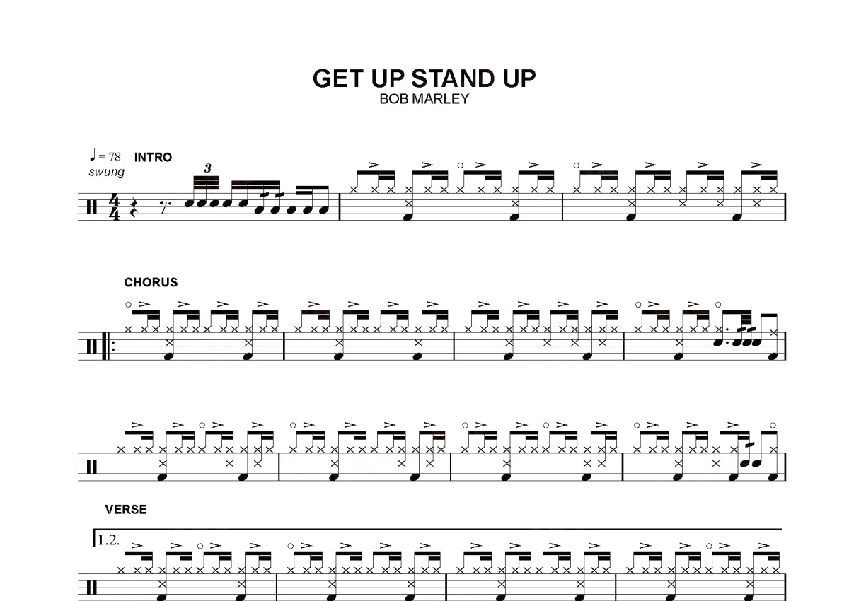 《get up stand up》是bob marley演唱的一首歌曲,这份鼓谱共有一张高清图谱,图谱由 @打鼓谱 编配上传,图谱使用五线谱编配,使用这份get up stand up架子鼓谱,你将能够轻松地敲打出这首bob marley的get up stand up,快来尝试吧。歌名:Get Up, Stand Up 所属专辑:Africa Unite- The Singles Collection 时长:3:14 歌手:Bob Marley 歌词: Get up, stand up: stand up for your rights! 。
