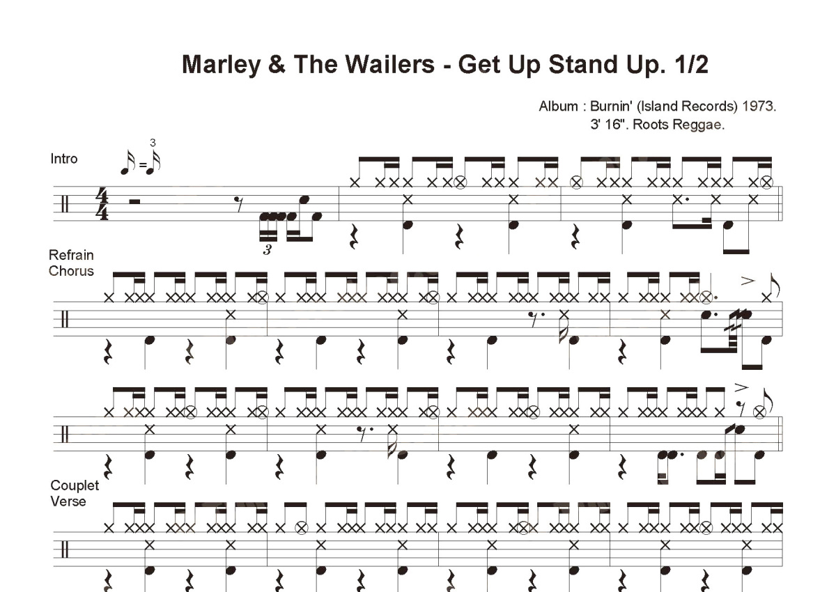 《Get Up, Stand Up Bob Marley》是Bob Marley演唱的一首歌曲,这份鼓谱共有两张高清图谱,图谱由 @打鼓谱 编配上传,图谱使用五线谱编配,使用这份Get Up, Stand Up Bob Marley架子鼓谱,你将能够轻松地敲打出这首Bob Marley的Get Up, Stand Up Bob Marley,快来尝试吧。歌名:Get Up, Stand Up 所属专辑:Africa Unite- The Singles Collection 时长:3:14 歌手:Bob Marley 歌词: Get up, stand up: stand up for your rights! 。
