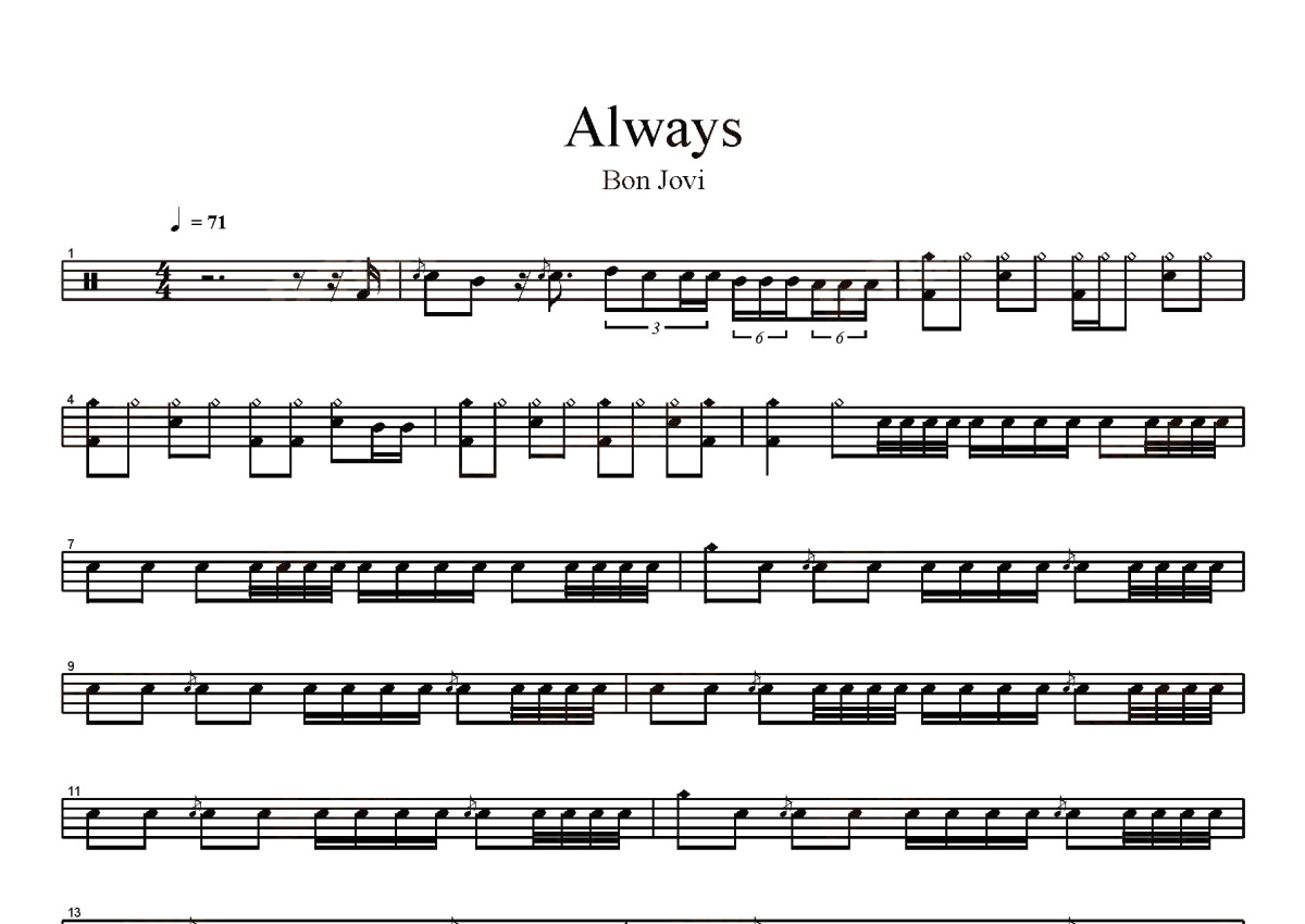Bon Jovi《Always》鼓谱 - 架子鼓谱