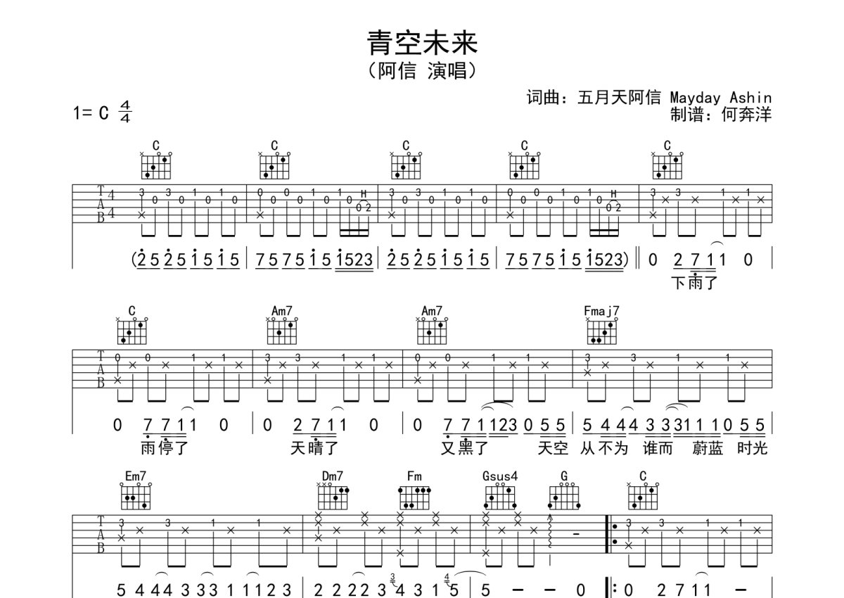 阿信《青空未来》吉他谱 - C调弹唱六线谱