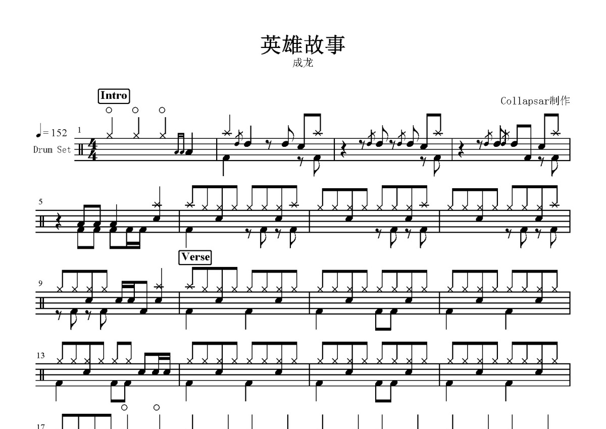 成龙《英雄故事》鼓谱 - 架子鼓谱