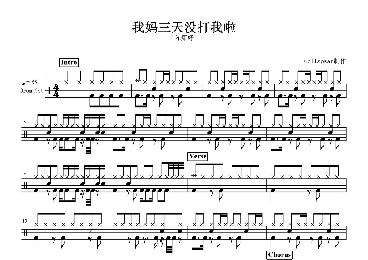 陈炻妤《我妈三天没打我啦》鼓谱 - 架子鼓谱