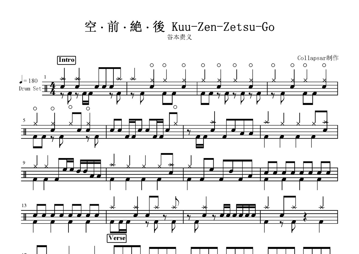 谷本贵义《空前绝後 Kuu zen ze zi gou》鼓谱 - 架子鼓谱