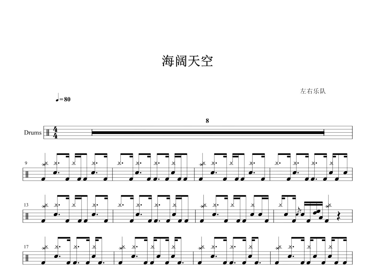 左右乐队《海阔天空》鼓谱 - 架子鼓谱