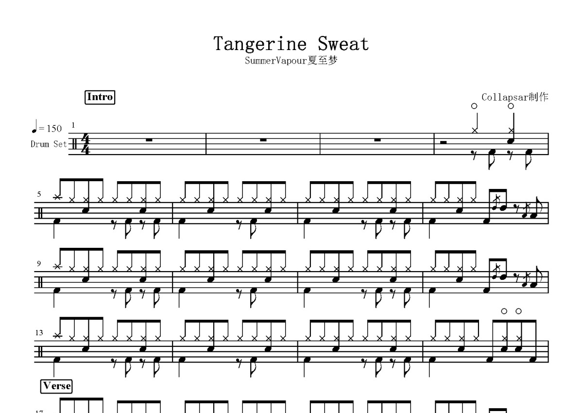SummerVapour夏至梦《Tangerine Sweat》鼓谱 - 架子鼓谱