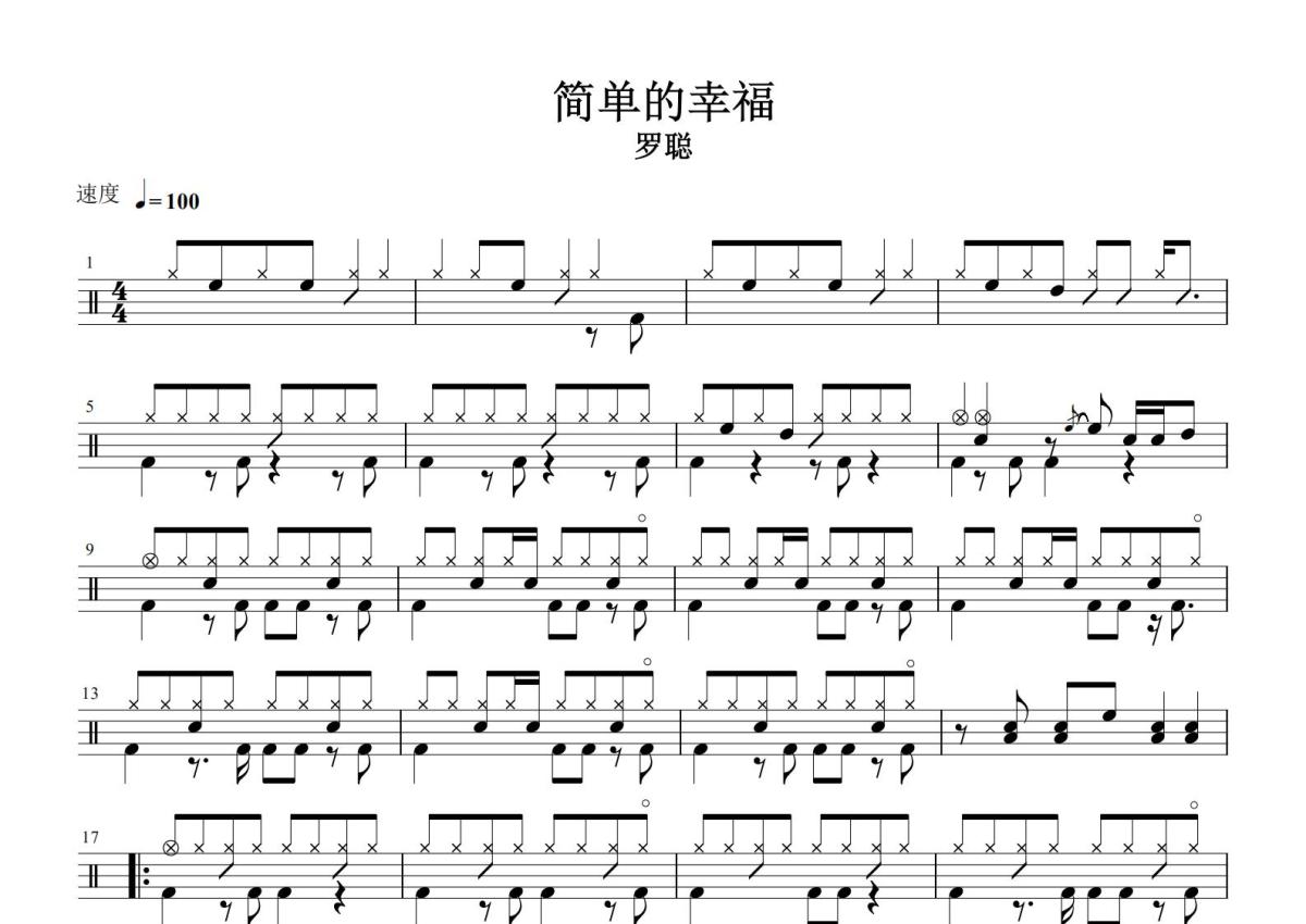 罗聪《简单的幸福》鼓谱 - 架子鼓谱
