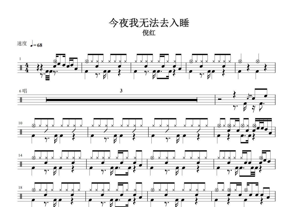 《今夜我无法去入睡》是霓虹演唱的一首歌曲,这份鼓谱共有两张高清图谱,图谱由 @打鼓谱 编配上传,图谱使用五线谱编配,使用这份今夜我无法去入睡架子鼓谱,你将能够轻松地敲打出这首霓虹的今夜我无法去入睡,快来尝试吧。《今夜我无法去入睡》是中国内地男歌手倪红演唱的歌曲,收录在同名专辑中。