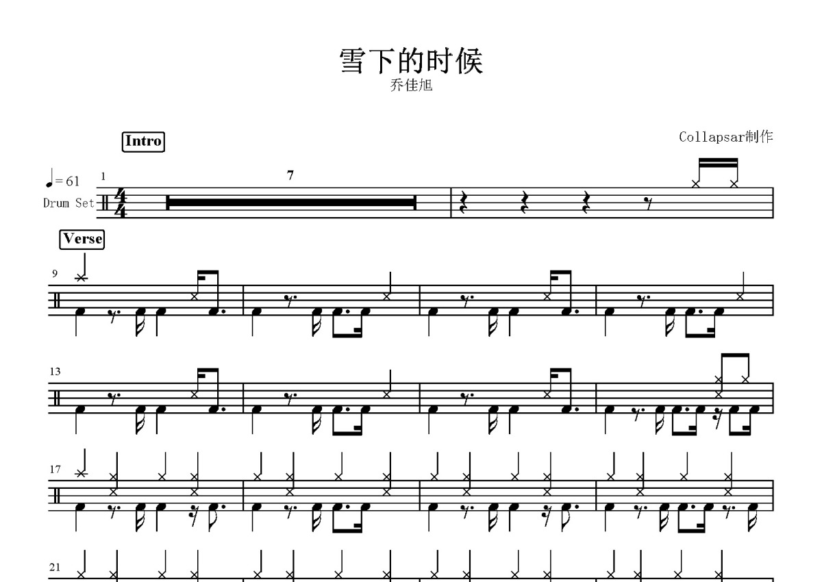 乔佳旭《雪下的时候》鼓谱 - 架子鼓谱