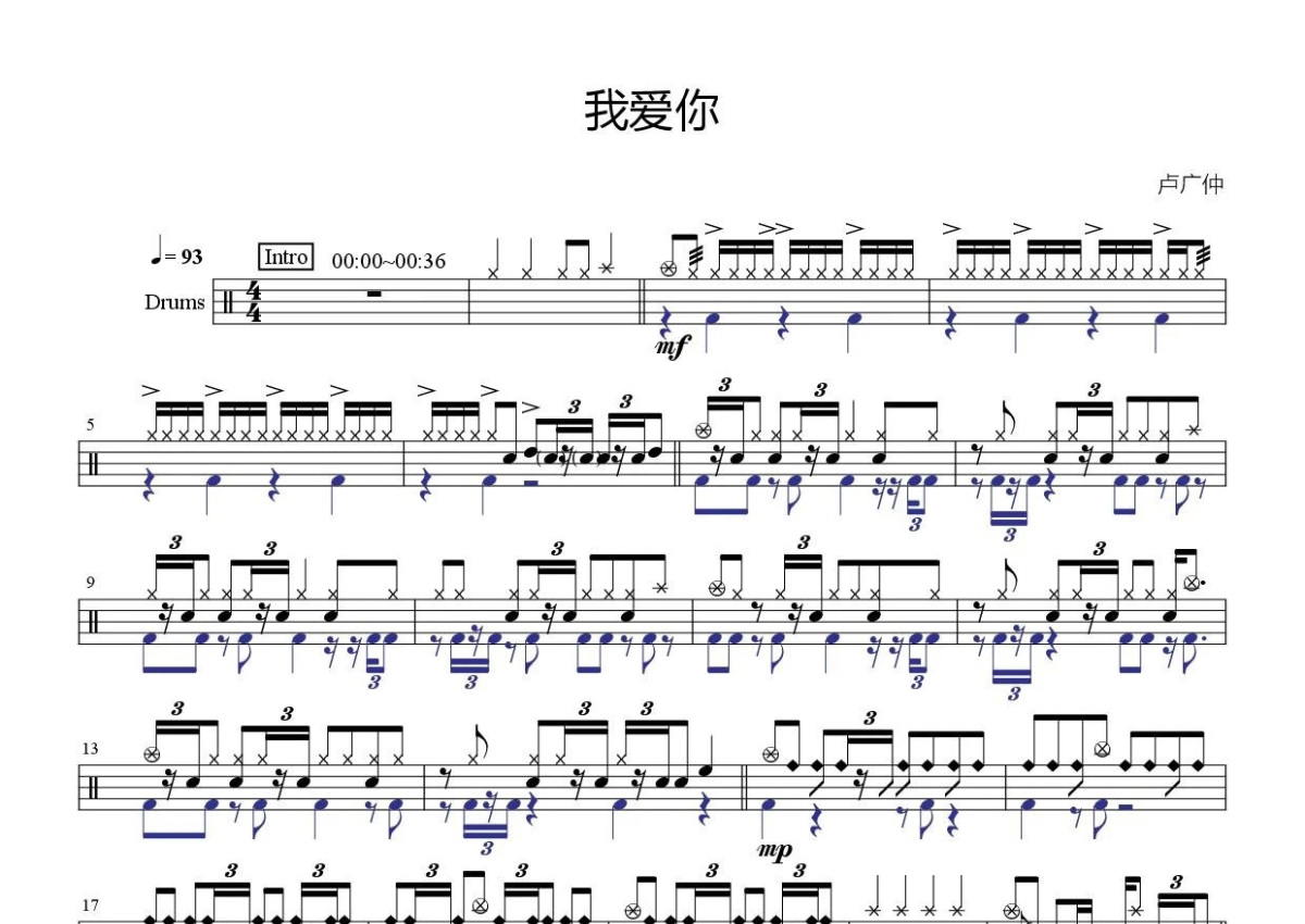 卢广仲《我爱你》鼓谱 - 架子鼓谱
