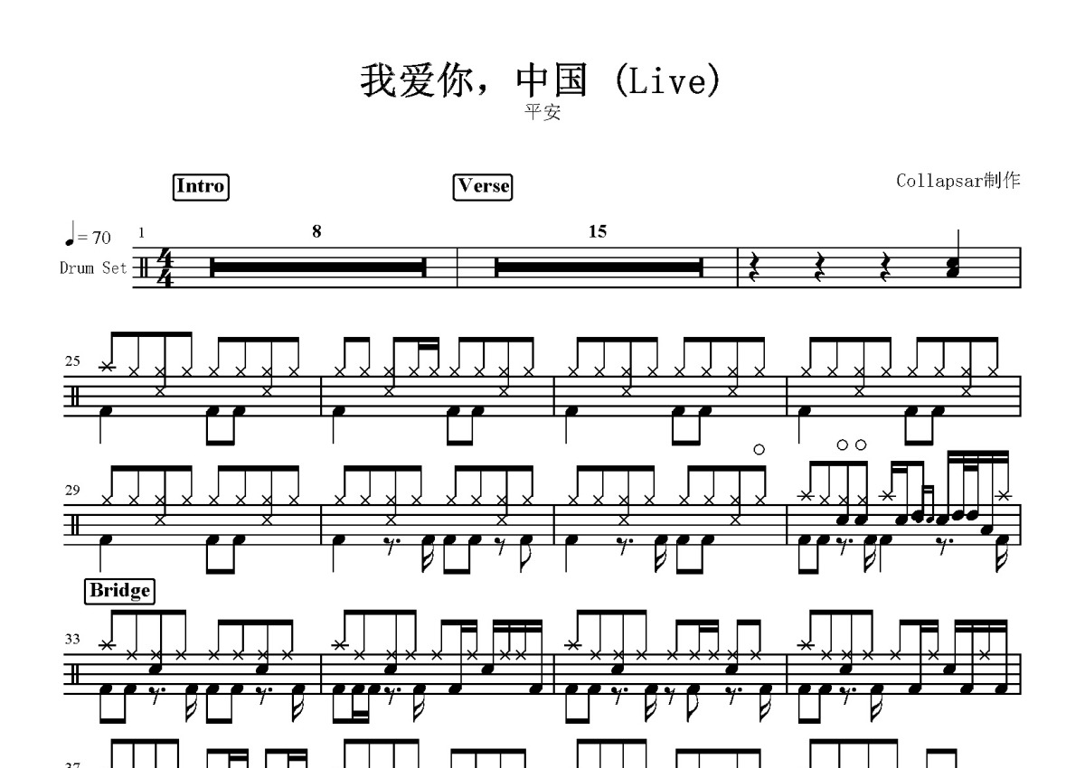 平安《我爱你,中国》鼓谱 - 架子鼓谱 - Live