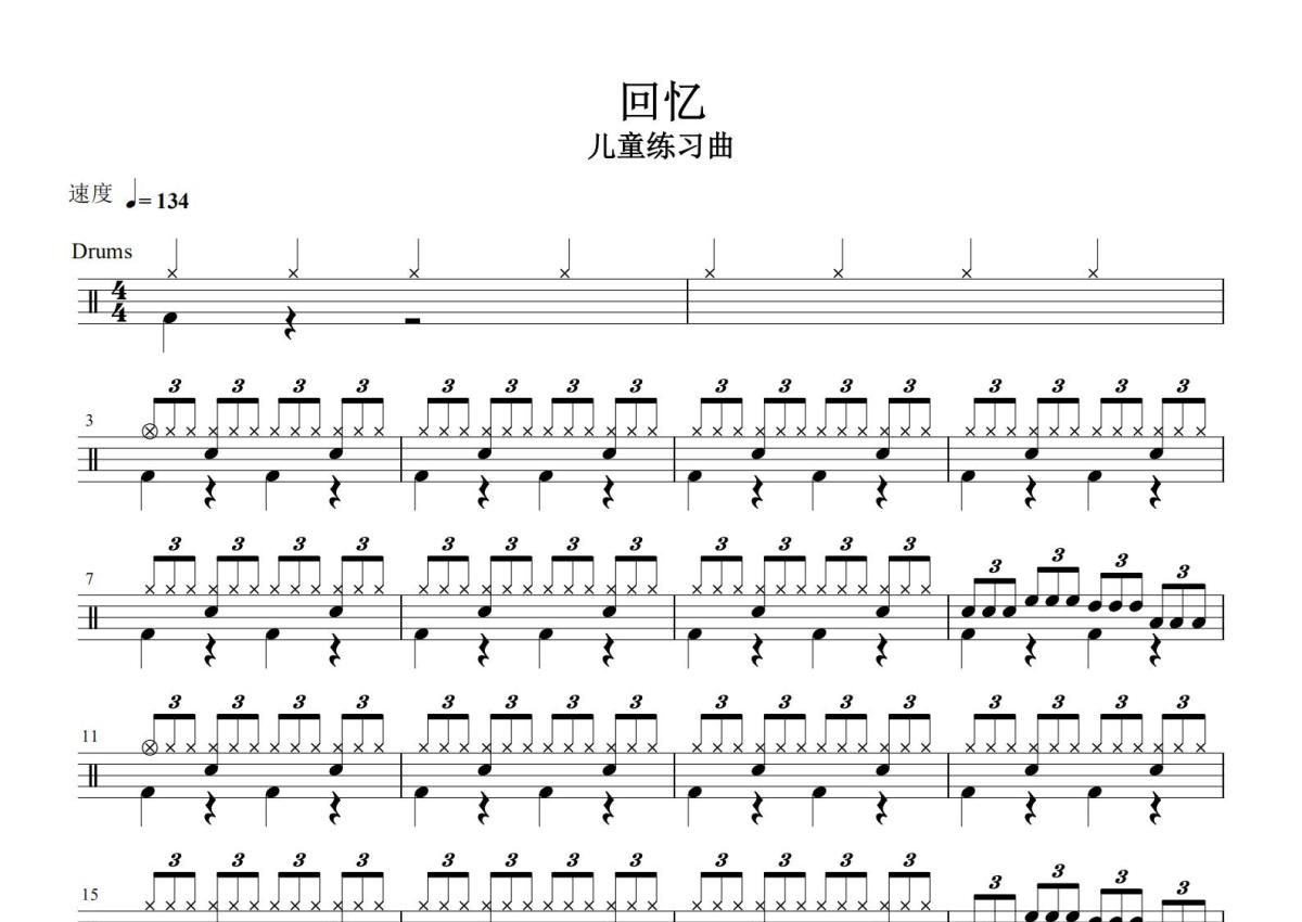 儿童练习曲《回忆》鼓谱 - 架子鼓谱