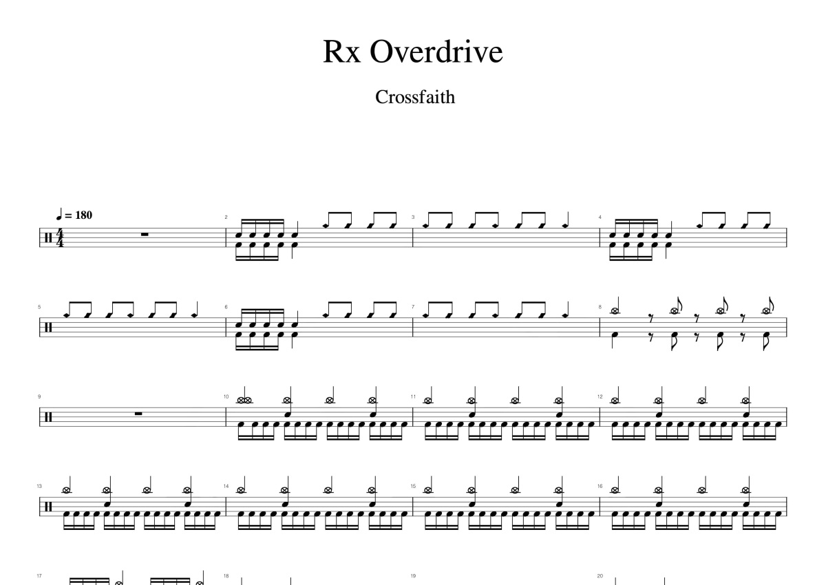 Crossfaith《Rx Overdrive》鼓谱 - 架子鼓谱