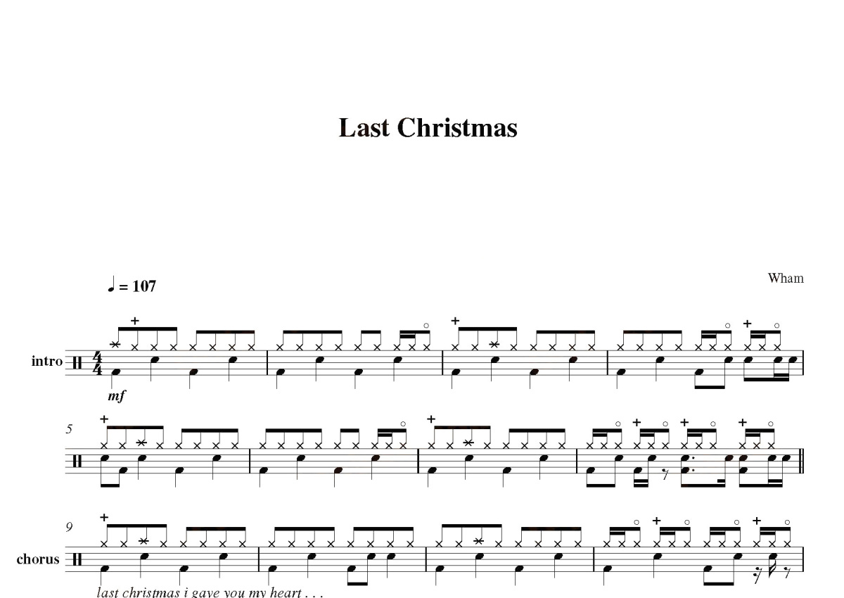 《Last christmas》是Wham!演唱的一首歌曲,这份鼓谱共有四张高清图谱,图谱由 @打鼓谱 编配上传,图谱使用五线谱编配,使用这份Last christmas架子鼓谱,你将能够轻松地敲打出这首Wham!的Last christmas,快来尝试吧。乔治·迈克尔(George Michael)在1984年还在威猛乐队(Wham!)时期所创作演唱的Last Christmas已经成为每年圣诞节街头店家还有各大电台必播的应景歌。有超过两百多位(组)不同曲风甚至不同国家的艺人翻唱过这首歌。