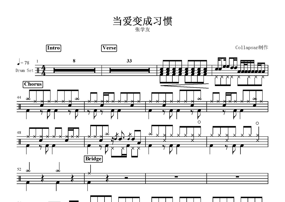 张学友《当爱变成习惯》鼓谱 - 架子鼓谱