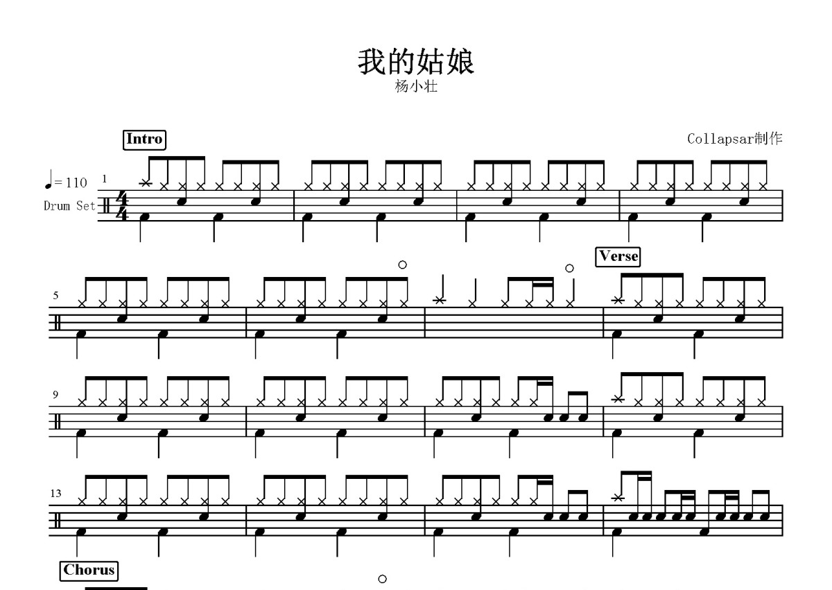 杨小壮《我的姑娘》鼓谱 - 架子鼓谱