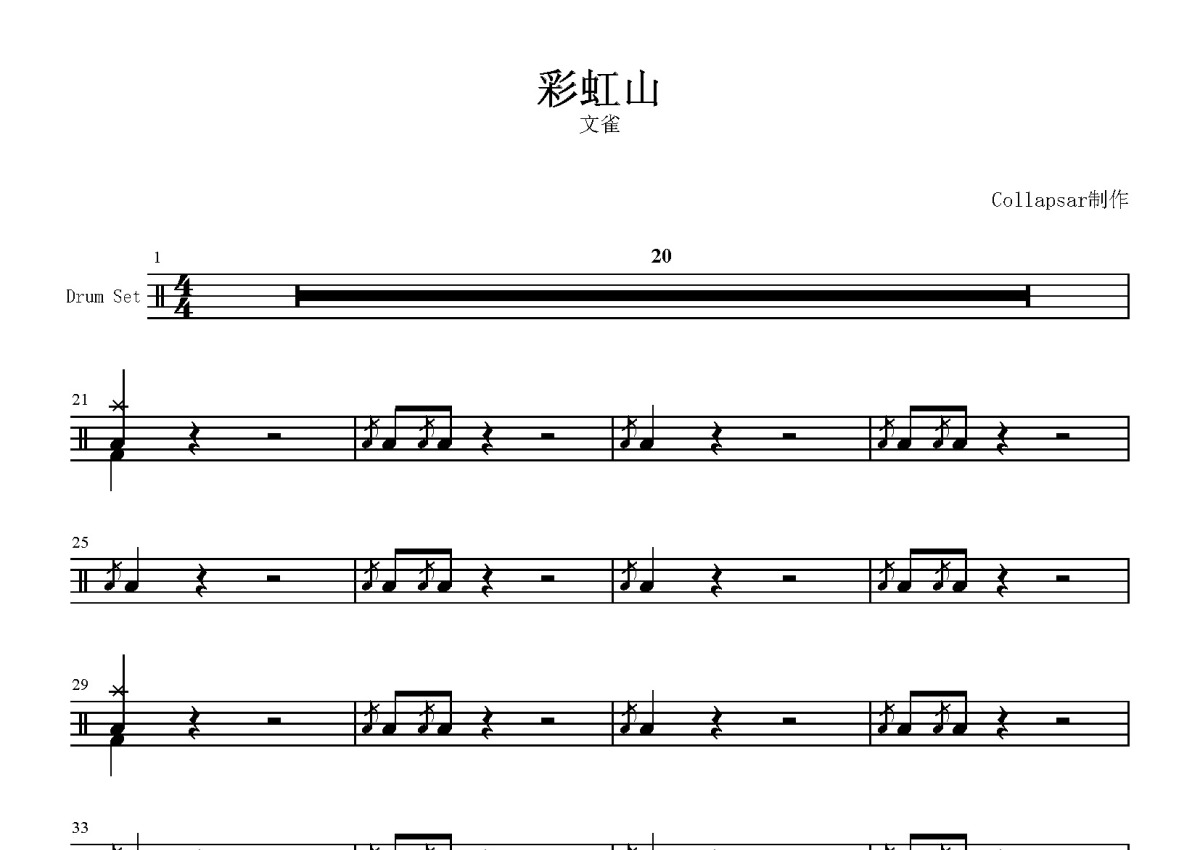 文雀《彩虹山》鼓谱 - 架子鼓谱