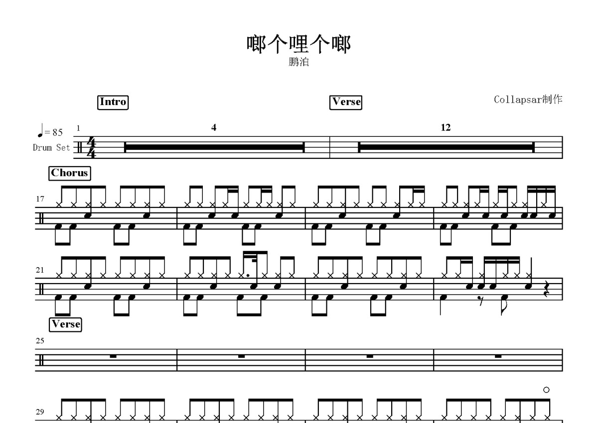 鹏泊《啷个哩个啷》鼓谱 - 架子鼓谱