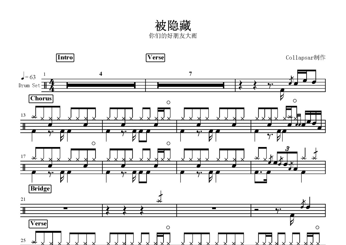 你们的好朋友大雨《被隐藏》鼓谱 - 架子鼓谱
