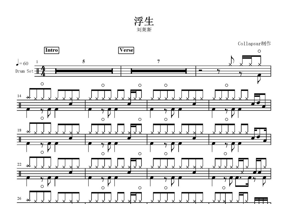 刘莱斯《浮生》鼓谱 - 架子鼓谱