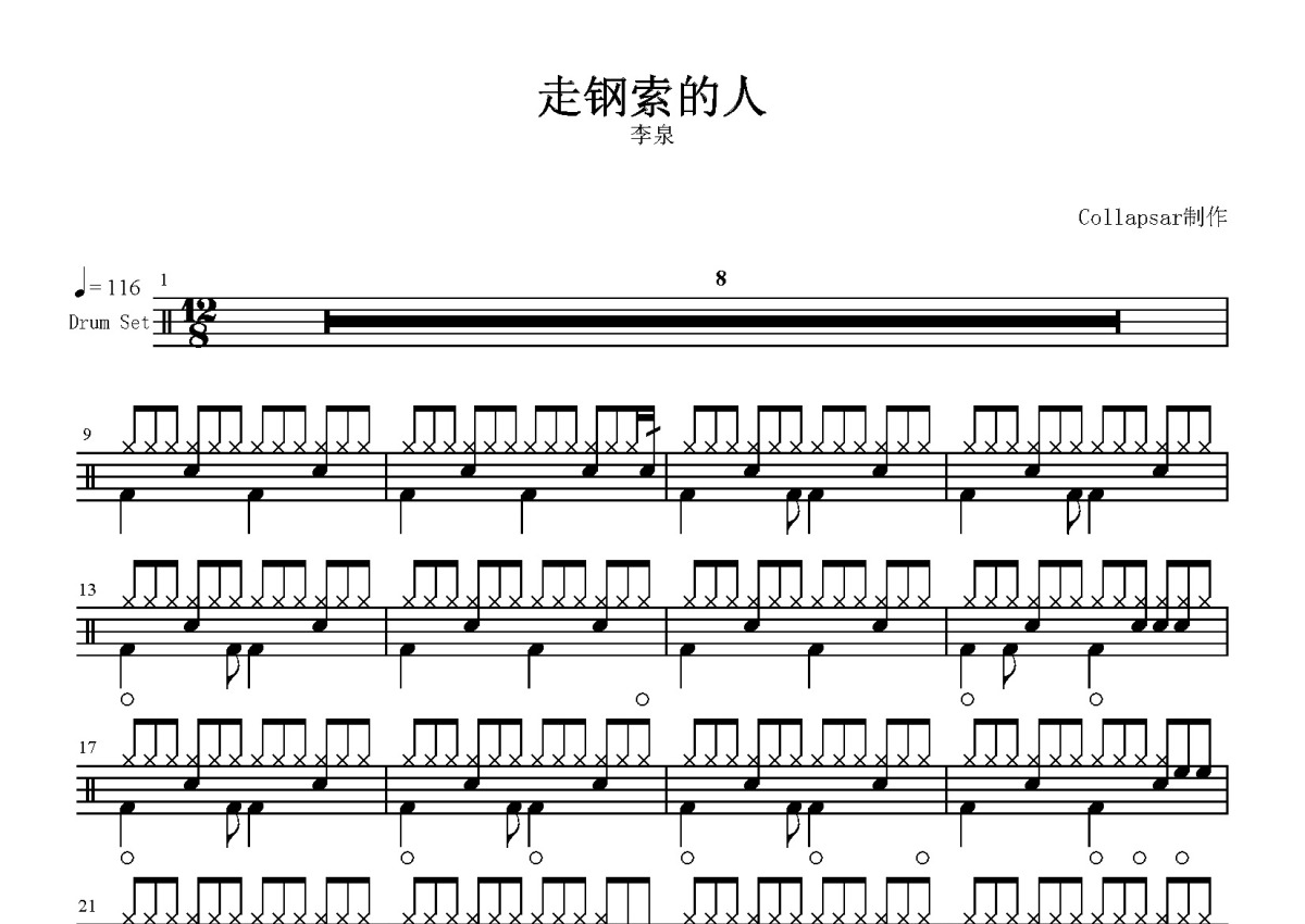 李泉《走钢索的人》鼓谱 - 架子鼓谱