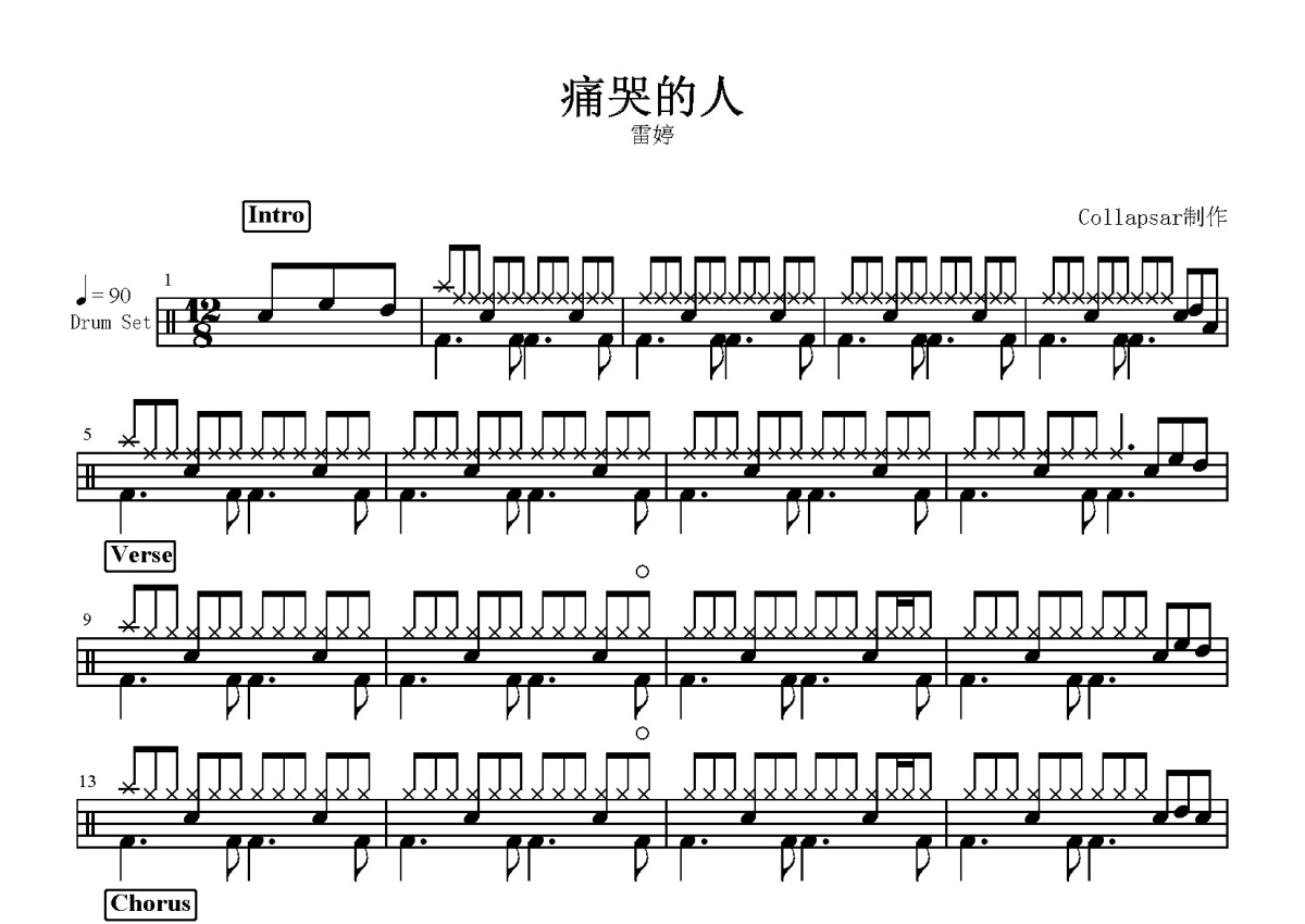 雷婷《痛哭的人》鼓谱 - 架子鼓谱