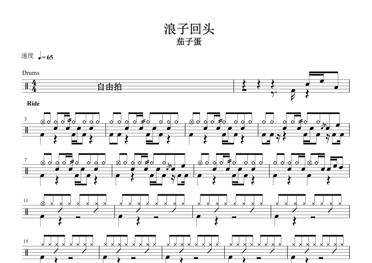茄子蛋《浪子回头》鼓谱 - 架子鼓谱