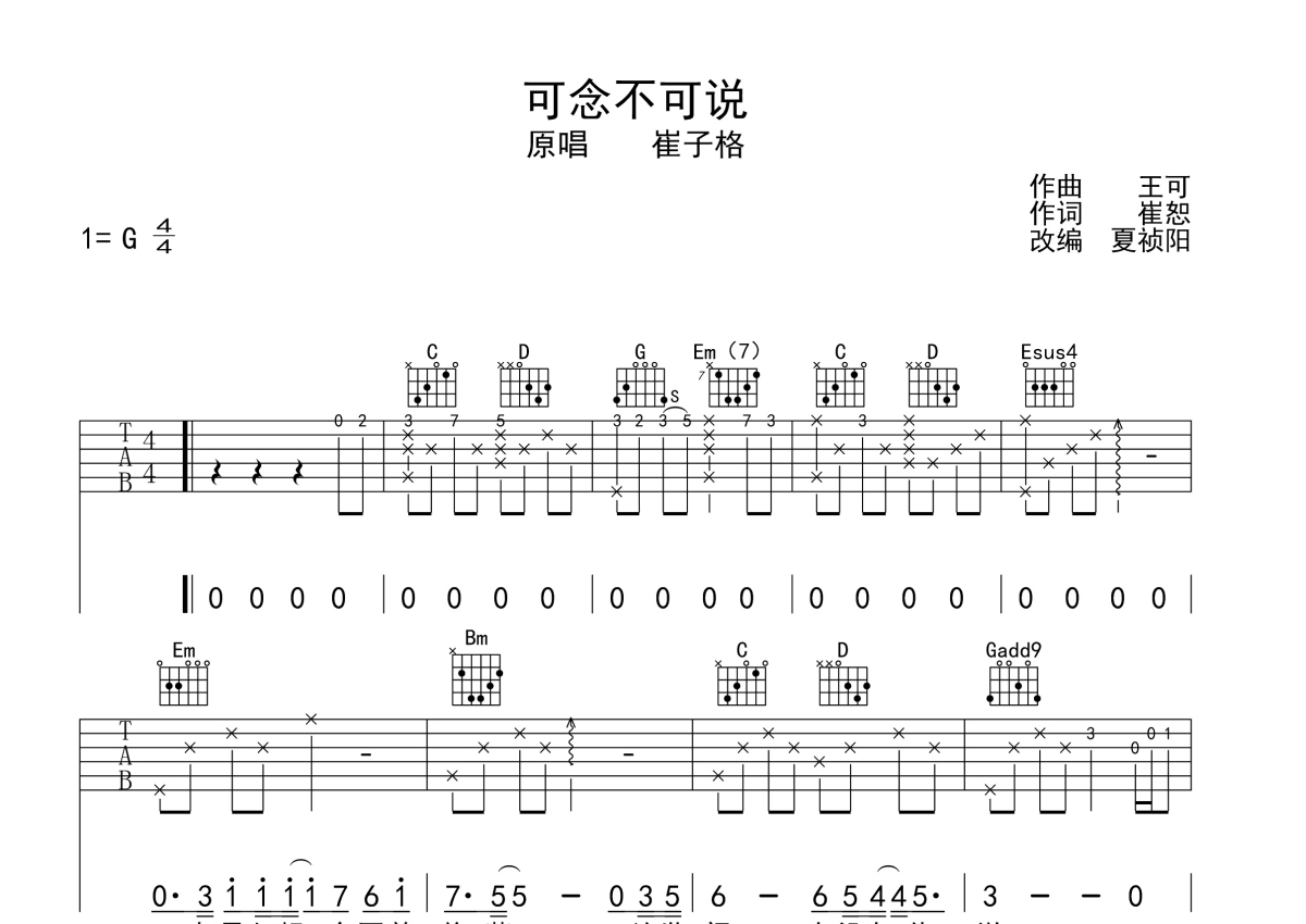 崔子格《可念不可说》吉他谱 - G调弹唱六线谱