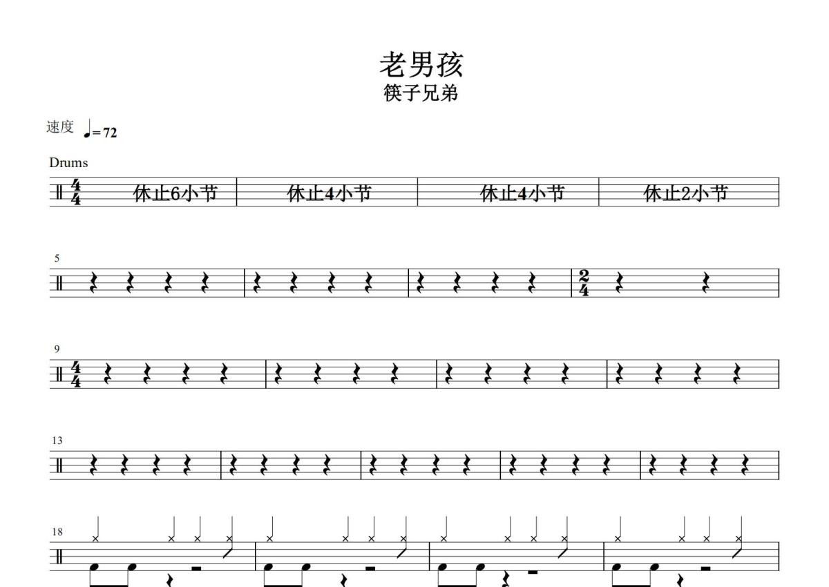 筷子兄弟《老男孩》鼓谱 - 架子鼓谱