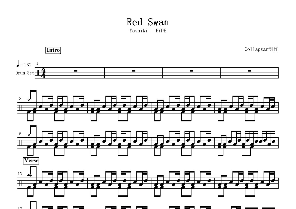 Yoshiki _ HYDE《red swan》鼓谱 - 架子鼓谱