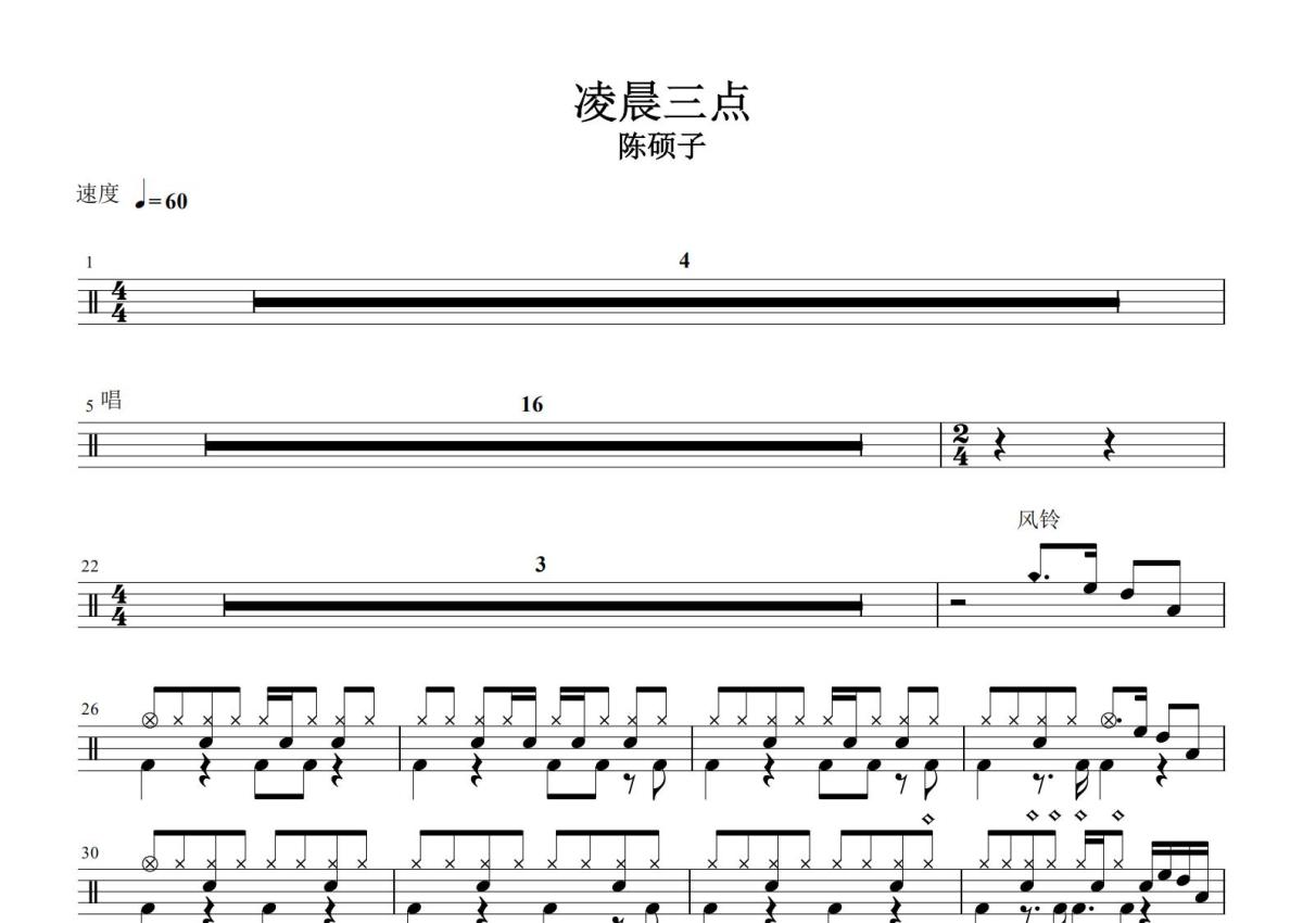 陈硕子《凌晨三点》鼓谱 - 架子鼓谱