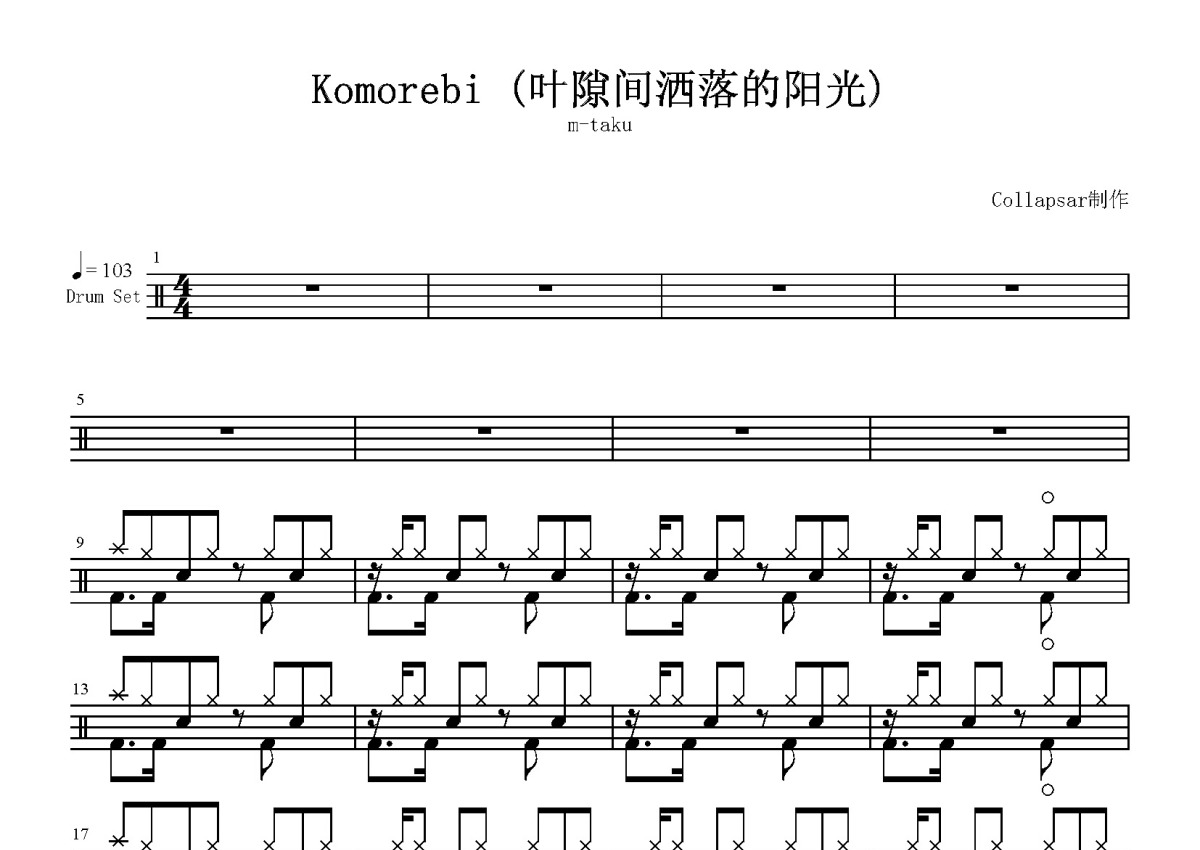 m-taku《komorebi》鼓谱 - 架子鼓谱