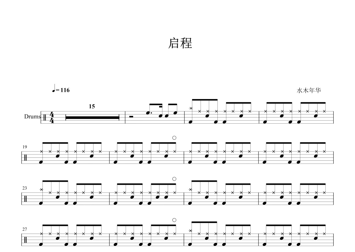 《启程》是水木年华演唱的一首歌曲,这份鼓谱共有四张高清图谱,图谱由 @打鼓谱 编配上传,图谱使用五线谱编配,使用这份启程架子鼓谱,你将能够轻松地敲打出这首水木年华的启程,快来尝试吧。《启程》是由卢庚戌作词、作曲,水木年华演唱的歌曲,收录于水木年华2010年5月11日发行的专辑《启程》中。 2010年3月6日,该曲获得音乐先锋榜内地十大先锋金曲奖、最佳首播歌曲奖 。