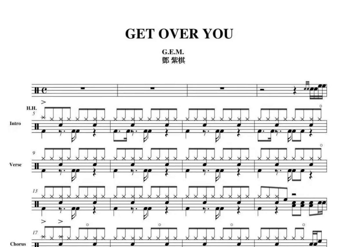邓紫棋《Get over you》鼓谱 - 架子鼓谱